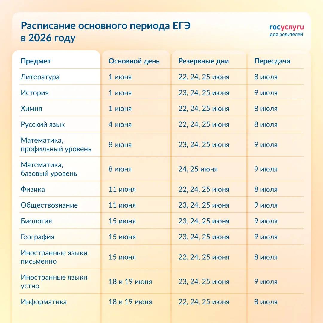 Расписание ЕГЭ 2026 г.