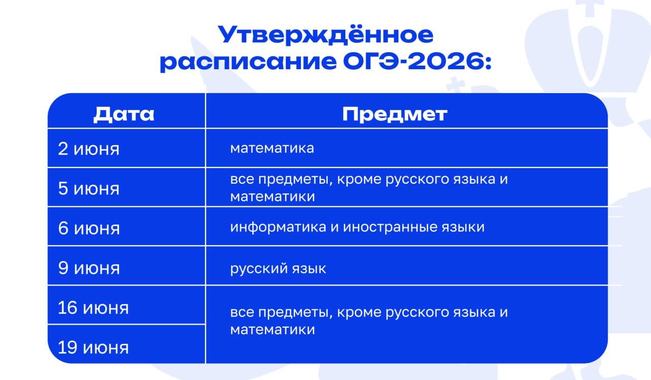 Расписание ОГЭ 2026 г.